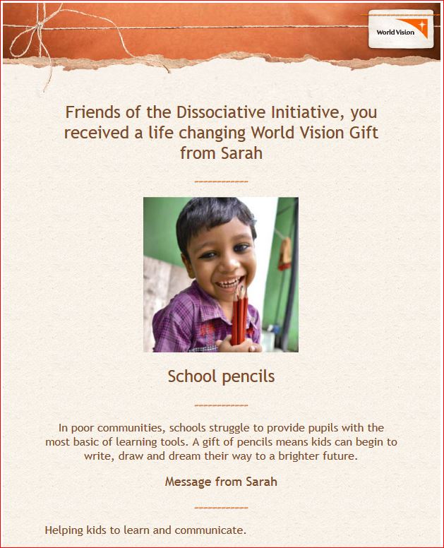 Merry Christmas to those of you who celebrate it! Especially for those us who struggle at this time of year due to trauma, loneliness, family stress, and poverty, I hope you can find some peace and hope. If not, I hope you can keep your heads down and hide out until it’s over for another year. My thoughts are with you. We are a caring and generous community that I feel deeply privileged to be part of. I’ve bought a couple of gifts that have been given in your name if you wish. We give so much to each other and in a small way are also helping to make the world a safer place for kids, and to help them communicate.